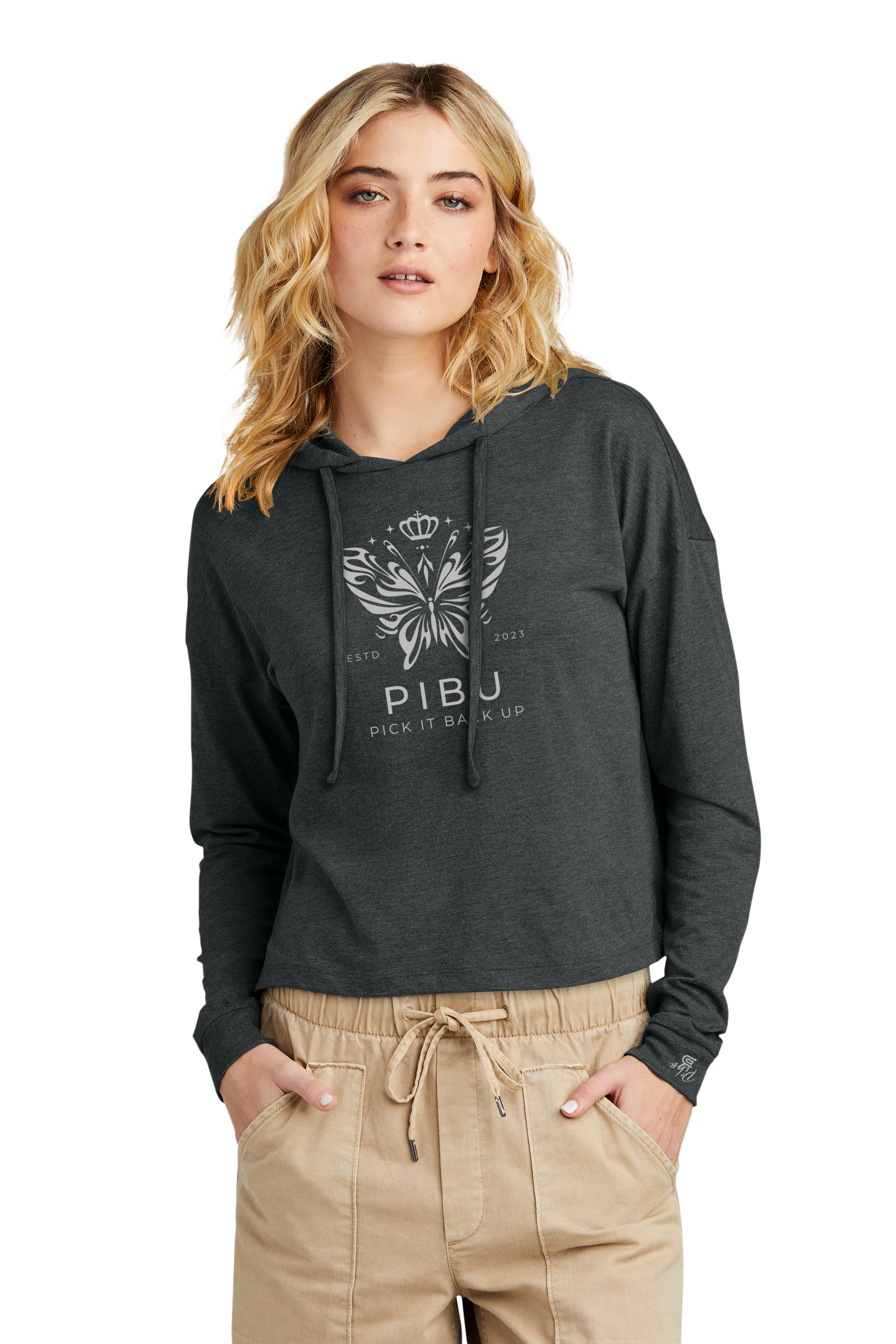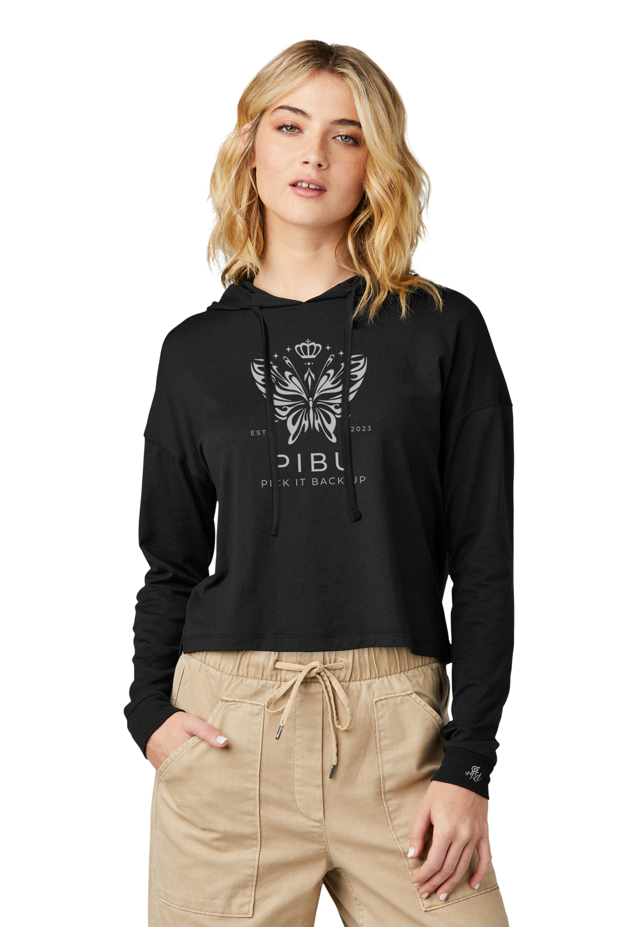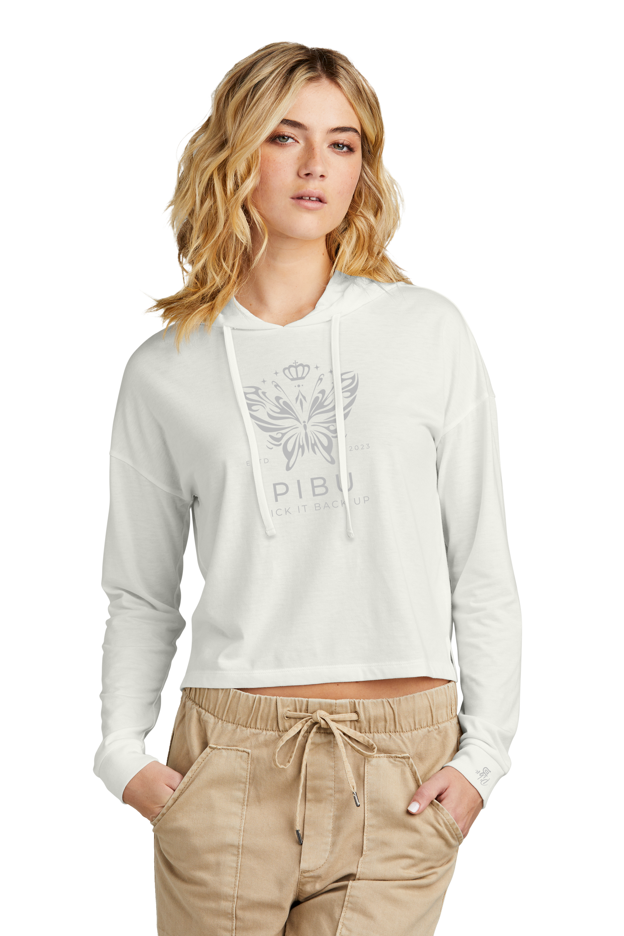 The Women's PIBU Butterfly Cropped Hoodie offers a perfect blend of comfort and contemporary style. Crafted with soft, breathable fabric, it ensures all-day wearability while the cropped design adds a modern, flattering silhouette. The subtle butterfly motif enhances its unique aesthetic, making it a versatile piece for casual outings or layering. Designed with attention to detail, this hoodie provides both warmth and a lightweight feel, ideal for transitional weather. Elevate your wardrobe with this expertly tailored hoodie that balances fashion-forward design with everyday practicality.